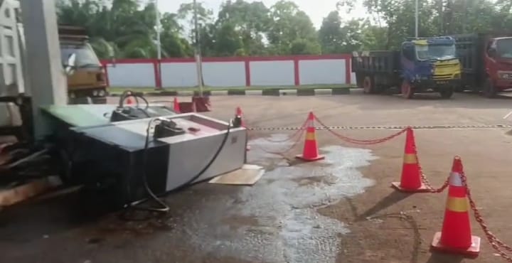 Infosuaramabes.id.Kubu Raya, Kalimantan Barat – 10 Oktober 2025 Kejadian di SPBU Lintang Batang, Desa Teluk Bakung, Kecamatan Sungai Ambawang, Kabupaten Kubu Raya, Kalimantan Barat, pada Jumat (10/10/2025) pagi, mendadak viral di berbagai grup WhatsApp warga. Dalam rekaman video yang beredar, tampak sebuah truk menabrak mesin pompa pengisian BBM subsidi jenis solar di area SPBU tersebut.
