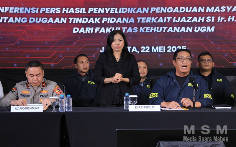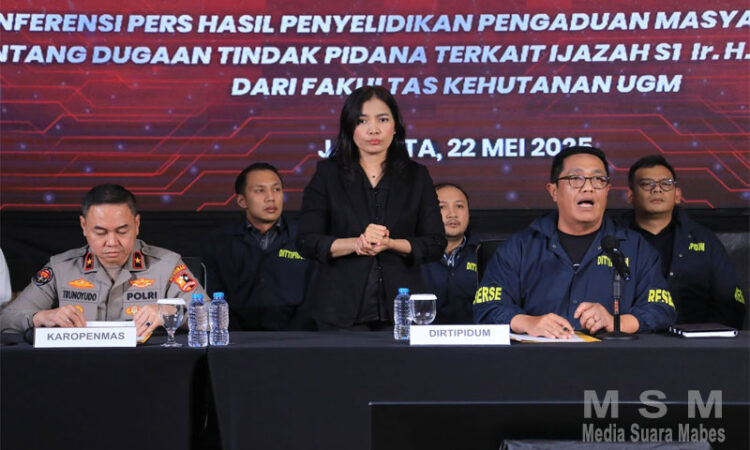 INFOSUARAMABES, Jakarta – Bareskrim Polri menegaskan bahwa dokumen ijazah Joko Widodo dinyatakan asli dan sah berdasarkan hasil penyelidikan dan uji forensik yang mendalam. Hal ini disampaikan dalam konferensi pers oleh Direktorat Tindak Pidana Umum (Dittipidum) Bareskrim Polri di Lobby Utama Gedung Awaloedin Djamin, Bareskrim Polri, Jakarta, Kamis (22/5).